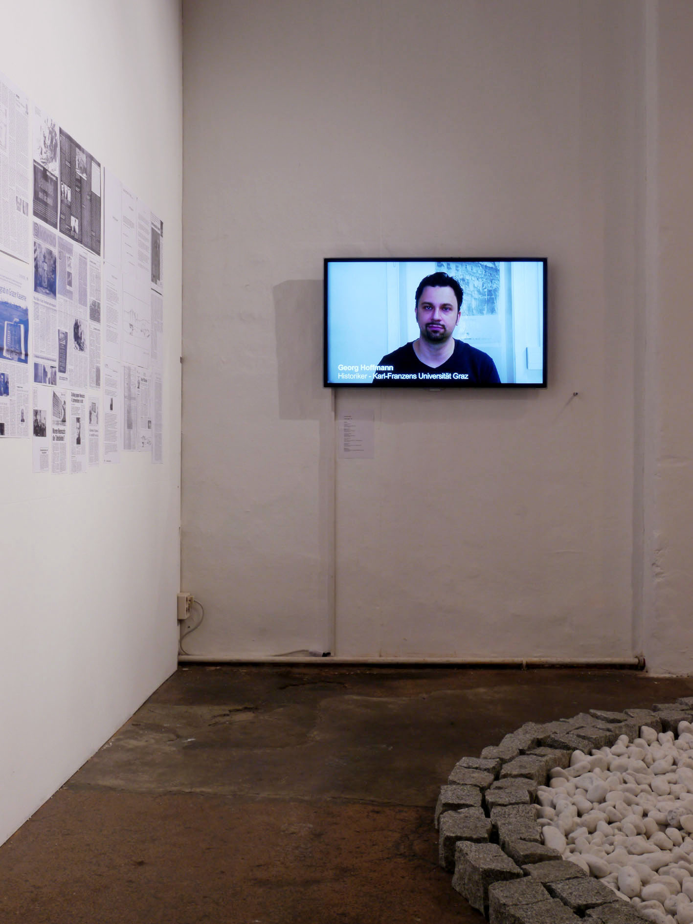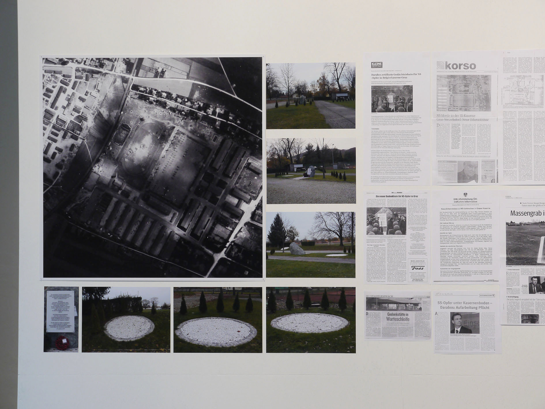 In einer installativen Arbeit und mittels Videointerviews mit unterschiedlichen Personen, die an der Aufdeckung und der Erforschung der Kriegsereignisse in der Belgierkaserne sowie an der Umsetzung der Gedächtnisstätte beteiligt waren, versucht Logar die Problematiken dieses Gedächtnisortes aufzuzeigen und die Hintergründe offizieller Gedenkkultur zu durchleuchten.